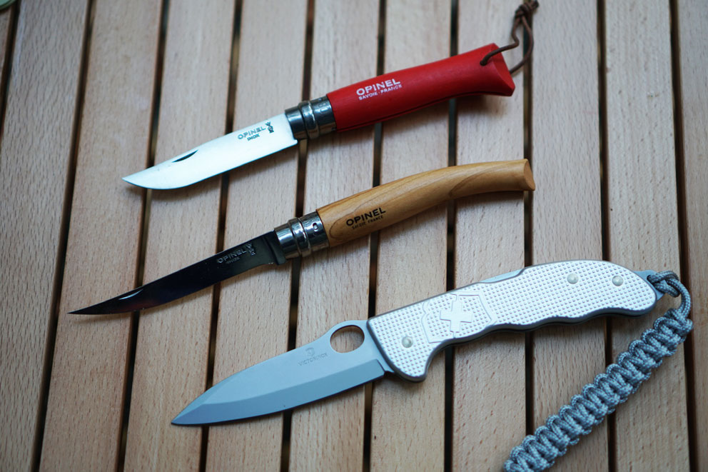 「OPINEL:ステンレススチール#8+#10フィレナイフ オリーブハンドル+VICTORINOX:ハンティングPro M AL」